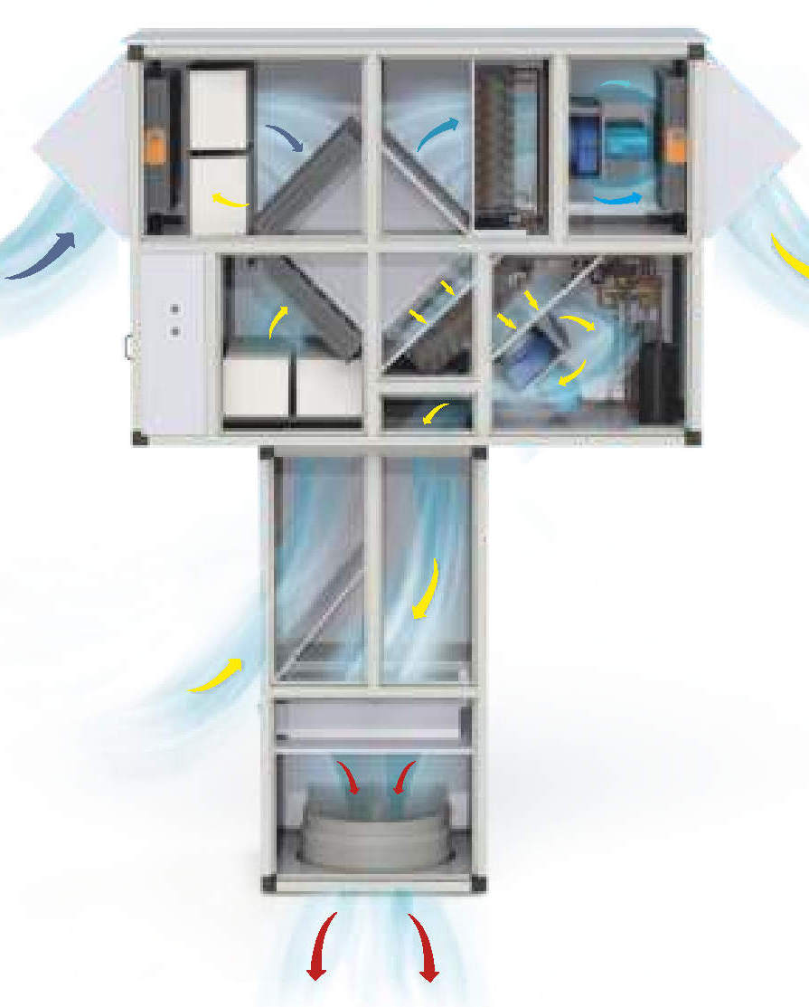 Схема распределения воздуха в агрегате климатическом крышного типа