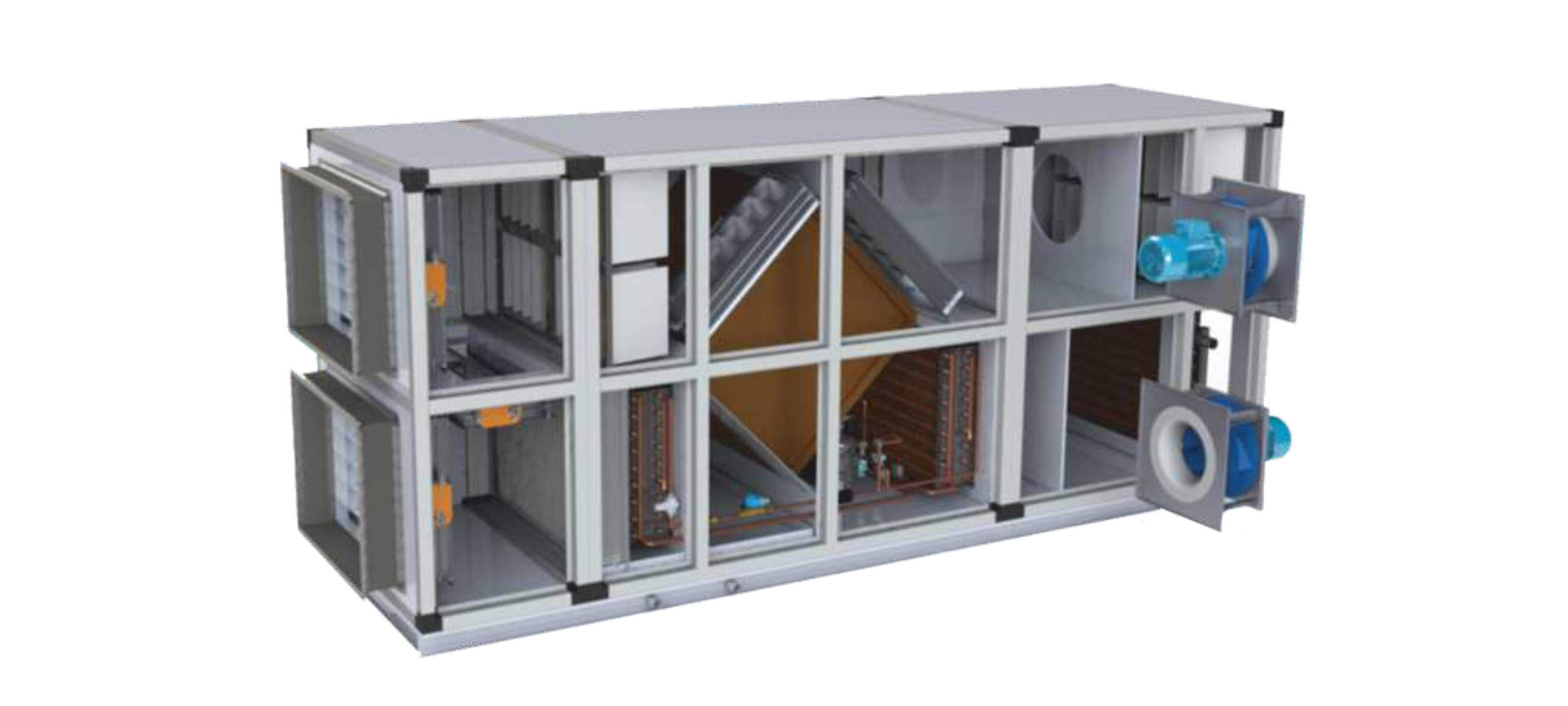 - Секция приточного вентилятора предназначена для забора свежего необработанного воздуха с улицы и подачи обработанного в обслуживаемое помещение, а секция вытяжного вентилятора – для удаления из помещения бассейна влажного воздуха. Для плавного пуска электродвигателей, для защиты от перегрузок, перегрева, пониженного напряжения, перенапряжения, а также для точного поддержания расхода воздуха в разных режимах работы осушителя (и возможности его регулировки от 30% до 100%) в комплекте с системой автоматического управления поставляются частотные преобразователи.