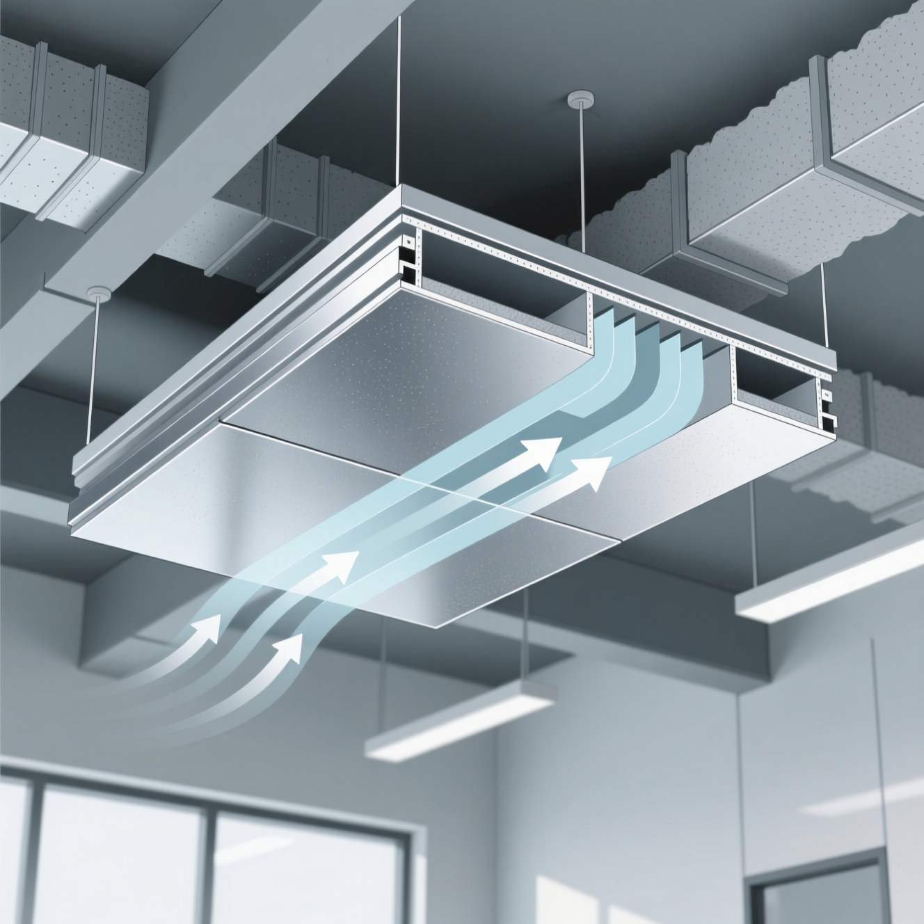 Принцип работы ламинарного потолка заключается в создании локальной зоны высокой чистоты благодаря постоянному направлению потока воздуха через HEPA-фильтр с одним направлением. Это обеспечивает идеальные условия для поддержания оптимальной чистоты внутри помещения.