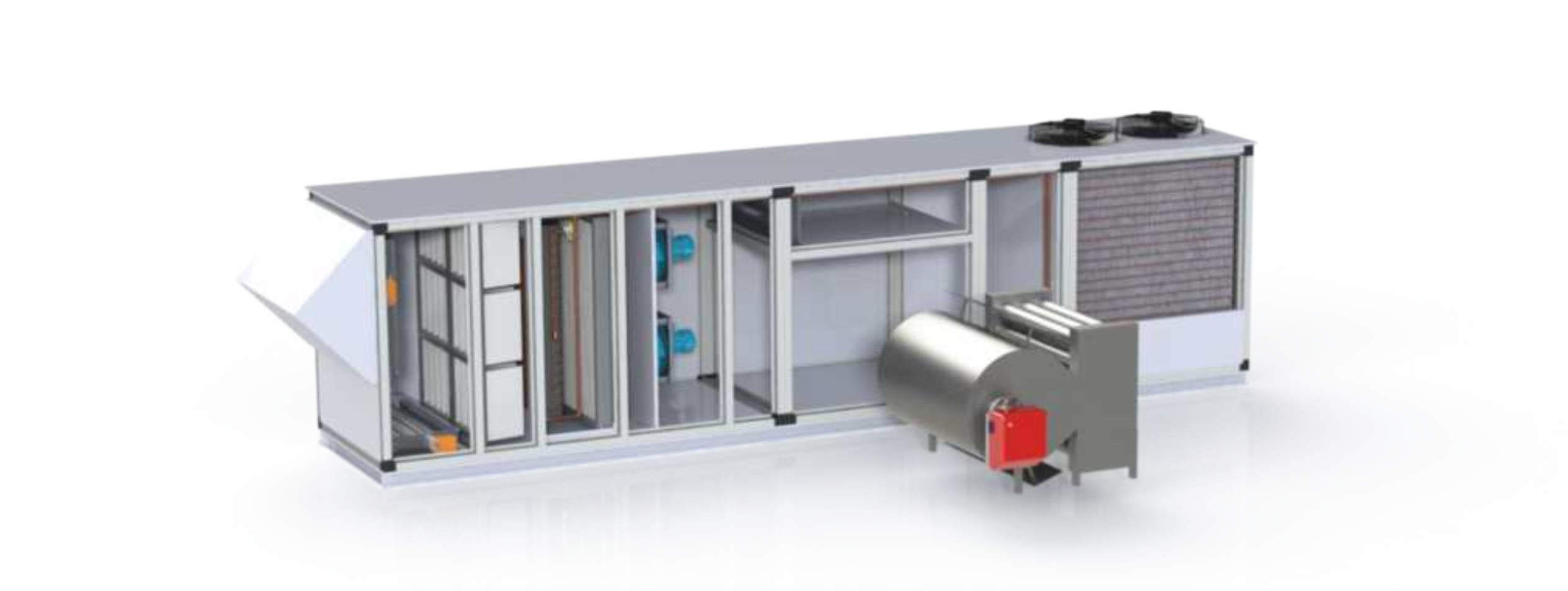 - Экономия с газовым нагревом: Секция газового нагревателя обеспечивает эффективный и экономичный нагрев воздуха даже при низких температурах, сокращая операционные расходы.