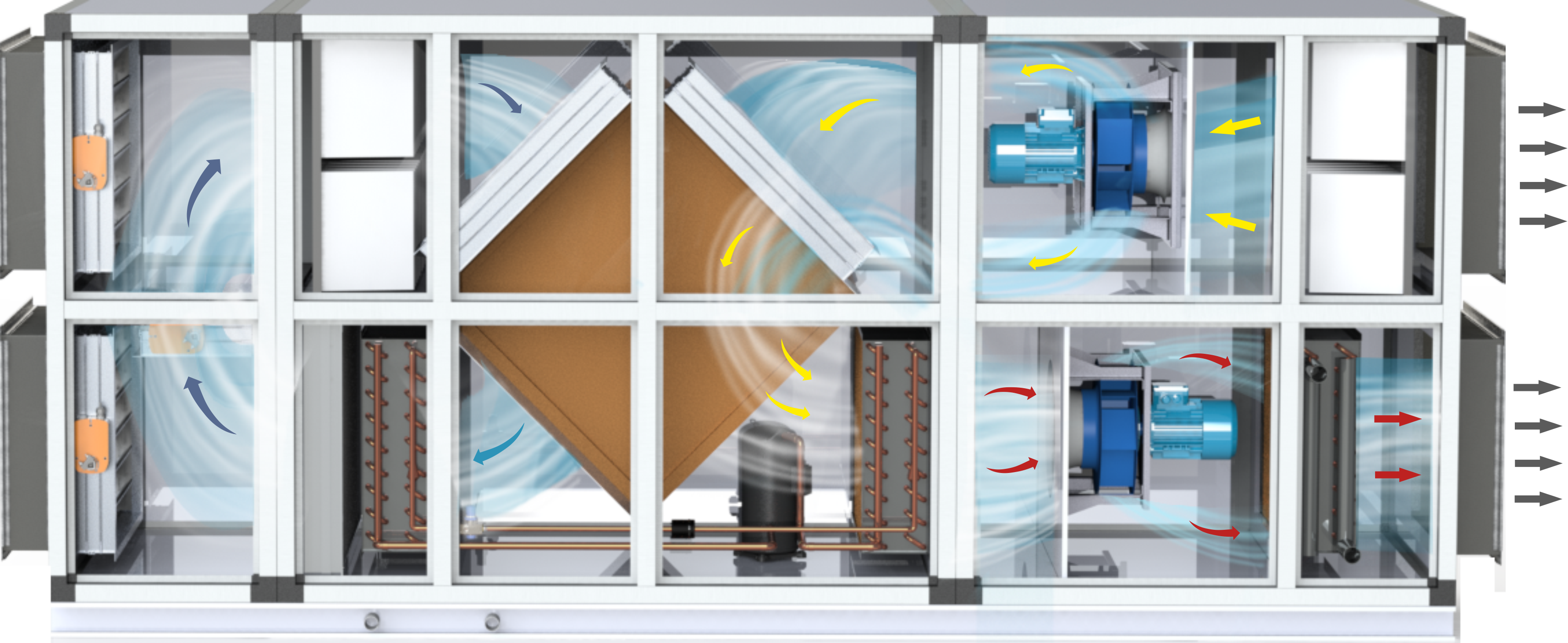 Особое внимание мы уделяем приточно-вытяжным установкам с рекуператором Т-образного типа: